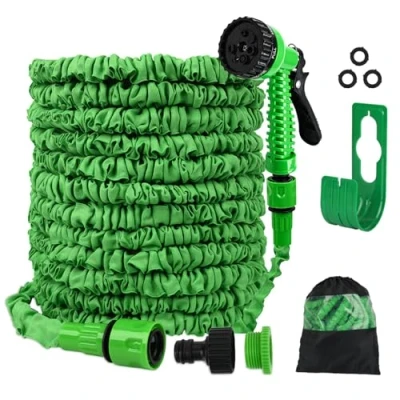 Stretchable: Flexible garden hose expands from 33.3ft to full length of 100ft in a short time under water pressure; ideal for watering the garden, lawn, pool or pond;the watering hose automatically retracts to its original compact size when the water stops flowing 7 function modes:Fulfill all your gardening needs with a wide array of options, including flat, center, cone, full, mist, jet, and shower modes. The hose reel can be used for multiple purposes indoor and outdoor watering needs. Includes accessories:Flexible hose with adapters for any tap with 1/2 inch and 3/4 inch thread; Connector for combining multiple hoses for even more range multifunctional use:This hose is great for many watering and cleaning uses for garden, lawn, yard, workshop, car-washing shop, RV, house, pool, boat cleaning, bathing dogs pets, etc. after-sales service:We attach great importance to the buyer’s shopping experience. If you find any problems with our water hosepipe, please feel free to contact us, we will solve it within 24 hours., Manufacturer: SENTAIMAO