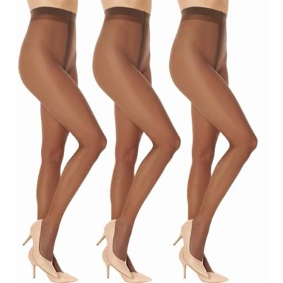 SENTELEGRI 3 Pairs Exclusive T Band 15 Denier Sheer Tights Multipack, Sizes S,M,L,XL,XXL (UK, Alpha, M, Regular, Brown)