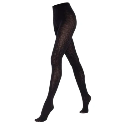 SENTELEGRI Lora Beautiful Semi Opaque Geometric Patterned Tights 50 Denier 3D (UK, Alpha, M, Regular, Black)