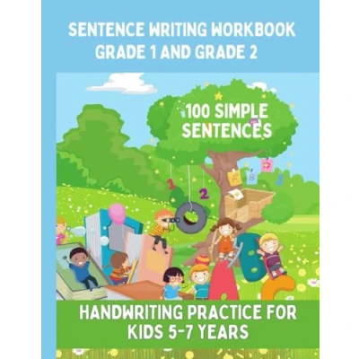 Sentence Writing Workbook Grade 1 and 2, 100 Simple Sentences: Handwriting Practice For Kids 5 7 Years Blue Cover