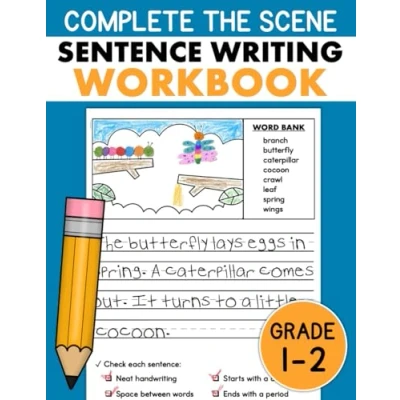 Sentence Writing Workbook Grades 1 to 2: Sentences Practice for Kids 5 7, Skills, Activities with Picture Prompts, Draw and Write