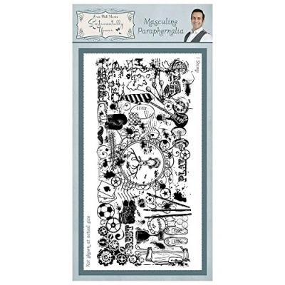Masculine Paraphernalia - is a wonderful Collage Background Rubber Stamp Deeply etched pre-cut rubber stamp for easy use Mounted on unmount foam Can be temporarily mounted on an acrylic block. Manufacture red in UK