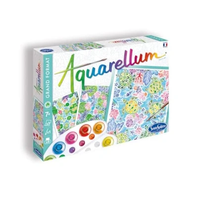 Sentosphère 3906399 Watercolour Painting Set for Children, Animals on the Water, Large Templates, DIY Creative Set, Craft from 7 Years