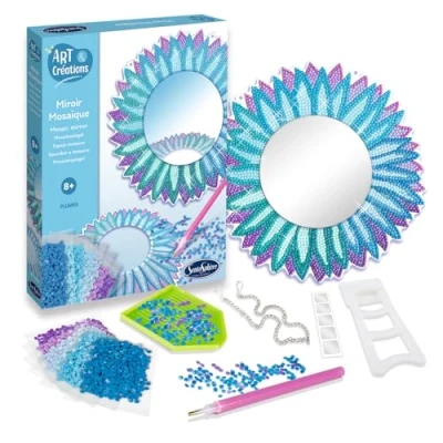 A MIRROR TO DECORATE LIKE A REAL ARTIST: With this set, children from 8 years old can customize a mirror with coloured rhinestones for a sparkling and elegant look. CALM AND EXCITING ACTIVITY: This introduction to mosaic develops patience and concentration by carefully placing each rhinestone on the feather pattern. An all-inclusive set to create without waiting: the kit contains a mirror tray, coloured rhinestones, adhesive wax, an applicator pencil and an instruction manual. STIMULATES AESTHETICS AND FINE MOTRICITY: By playing with shapes and colors, the child develops his artistic sense and precision, while gaining confidence in his ability to create. A UNIQUE AND PERSONALIZED DECORATION: Once finished, the mirror becomes a real decorative object to display in your room or to proudly offer. A creative hobby signed Sentosphère., Manufacturer: Création Véronique Debroise