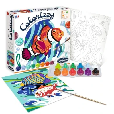 Sentosphère Sentosphere Colorizzy 3904502 Paint by Numbers Set for Children Fish & Seahorse Craft Creative Kit DIY Kids Carp, Multi Coloured