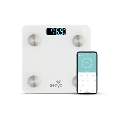 13 INDICATORS ON YOUR BODY COMPOSITION: weight, BMI, body fat, water percentage, muscle and bone mass… 8 users/baby weight model: This scale supports up to 8 different users. This means that the whole family can record their body index and create a personalized health profile. It also has a "baby scale" mode. HIGH PRECISION MEASUREMENT: This digital personal scale provides a high precision measurement of up to 180 kg. As for its size of 26 x 26 x 2 cm, it will be easy to take it with you anywhere. Bluetooth Scales via Fitdays: Bluetooth connected scale via the free "Fitdays" app, compatible with Android and iOS. All clues will be displayed on your phone or tablet via "Fitdays", so you can track your fitness changes. SYNCHRONIZATION HEALTHY APPS: The Fitdays app can also sync the data collected with Apple Health, Google Fit and Samsung Power health. It is compatible with Android 4.3 and above, as well as IOS6.1.3 and above!, Weight: 2.8880556322 pounds, Manufacturer: SENYA