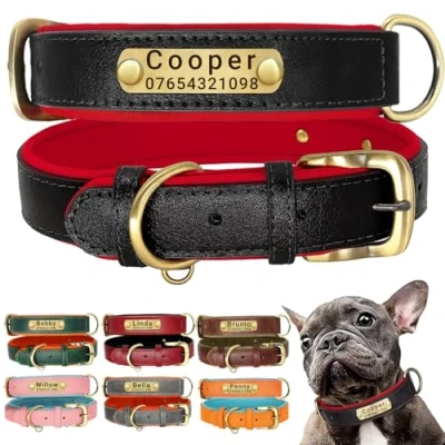【Exceptional Quality and Comfort】📏 Elevate your dog's style with our premium collar, meticulously crafted from top-grade vintage leather for a luxurious look. The outer layer's sleek finish is complemented by a breathable neoprene lining, ensuring maximum comfort without irritating your pet's skin. Ideal for all dog sizes, our collars come in various adjustable sizes: XS (7-11" neck), S (9-13" neck), M (11-15" neck), L (14-18" neck), and XL (17-22" neck). 【Personalised for Your Pet's Safety】🏷️ Never worry about your furry friend getting lost with our customizable nameplate. Engrave your dog's name and your contact number in bold, legible lettering, ensuring they're always identifiable. The name is prominently displayed, making it easier for a safe return if they wander off. 【Robust and Rust-Resistant Hardware】🌟 Our dog collars feature upgraded, bronze-brushed buckles and D-rings, crafted for durability and long-term use. The hardware is designed to resist rust and withstand vigorous activities, ensuring your pet's safety and your peace of mind. The additional small D-ring serves perfectly for attaching ID tags, while the larger one is ideal for leash attachment. 【Fashion-Forward and Versatile Design】🐾 Stand out with our stylish collar, available in a variety of colors and two-tone designs, making it perfect for everyday use and special occasions. Whether it's a casual walk, a trip, or celebrating holidays like Christmas and Halloween, your pet will always look fashionable and ready for any event. 【Optimized for All Breeds and Life Stages】🐶 Our collars are not just for dogs; they're also cat-friendly! Whether you have a petite Chihuahua, a playful Labrador, or a majestic German Shepherd, our adjustable collars cater to all breeds. The breathable material and adjustable design ensure comfort at every growth stage, from frisky puppies to dignified adult dogs.