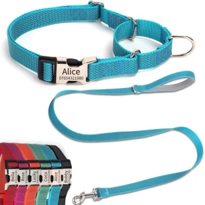 【Customised Safety with Personalised Metal Buckle】 This martingale dog collar comes with a durable, engraved metal nameplate featuring your dog’s name and your phone number. Unlike noisy, traditional dangling tags, our flat ID tag stays secure and quiet, preventing loss and reducing irritation. It’s a stylish and safer choice for your beloved pet, suitable for small, medium, and large dogs. 【Enhanced Safety with Reflective Nylon Design】 Both the collar and the 150cm (1.5m) lead leash are crafted with starry reflective nylon, making your dog visible during evening walks or low-light conditions. This reflective feature not only boosts safety but also adds a sleek, modern touch to your dog’s gear, ideal for walking, training, and everyday adventures. 【Comfortable Walks with Soft-Padded Handle】 Our leash is designed with a soft-padded handle, offering comfort and protection to your hands during walks, training, or running sessions. No more discomfort or strain, even if your dog pulls. It’s perfect for all-day use, letting you enjoy long outings with your active pet. 【Anti-Pull, Escape-Proof Martingale Design】 The collar’s figure-8 martingale design gently tightens when your dog pulls, providing gentle correction without choking, and preventing escapes. It’s an effective training tool that offers secure control, making it essential for leash training curious puppies, energetic medium breeds, and strong large dogs. 【Durable and Versatile for Training and Play】 Made with high-strength nylon and reinforced stitching, this reflective dog collar is built to last. The heavy-duty metal D-ring allows secure leash attachment, making it ideal for walking, running, and training. Whether used as an anti-pull collar or an everyday accessory, it’s designed for safety, style, and functionality.