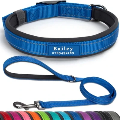 【Customised for safety & style】 Personalise your dog’s collar with their name and your phone number, and a unique design, ensuring they’re easily identifiable if lost. Say goodbye to noisy tags and hello to a sleek, durable, secure solution for your furry friend. 【Ultra wide soft neoprene padded】 Designed for ultimate comfort, our collar features a thick, wide neoprene lining that’s very plush on your dog’s neck. Perfect for active dogs, it prevents irritation and provides a snug fit during walks, training, or playtime. 【Reflective & durable design】 Built with visibility reflective stitching and a heavy-duty metal buckle, this collar ensures your dog’s safety during nighttime walks while offering unmatched durability and strength for even the most energetic and active pups. 【Adjustable & comfortable fit】Available in sizes S, M, L, and XL, our collar is fully adjustable to fit most breeds. The soft neoprene padding and lightweight design ensure comfort and ease, making it ideal for daily wear, whether for small puppies or large dogs. 【Vibrant colors & personalisation】Choose from a variety of colors like pink, purple, blue, grey, black, green, orange, and red to match dog’s personality. Customise the collar to make your pup stand out while keeping them safe and comfortable.