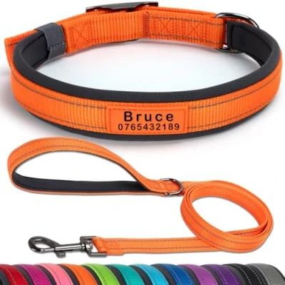 【Customised for safety & style】 Personalise your dog’s collar with their name and your phone number, and a unique design, ensuring they’re easily identifiable if lost. Say goodbye to noisy tags and hello to a sleek, durable, secure solution for your furry friend. 【Ultra wide soft neoprene padded】 Designed for ultimate comfort, our collar features a thick, wide neoprene lining that’s very plush on your dog’s neck. Perfect for active dogs, it prevents irritation and provides a snug fit during walks, training, or playtime. 【Reflective & durable design】 Built with visibility reflective stitching and a heavy-duty metal buckle, this collar ensures your dog’s safety during nighttime walks while offering unmatched durability and strength for even the most energetic and active pups. 【Adjustable & comfortable fit】Available in sizes S, M, L, and XL, our collar is fully adjustable to fit most breeds. The soft neoprene padding and lightweight design ensure comfort and ease, making it ideal for daily wear, whether for small puppies or large dogs. 【Vibrant colors & personalisation】Choose from a variety of colors like pink, purple, blue, grey, black, green, orange, and red to match dog’s personality. Customise the collar to make your pup stand out while keeping them safe and comfortable.