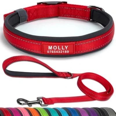 【Customised for safety & style】 Personalise your dog’s collar with their name and your phone number, and a unique design, ensuring they’re easily identifiable if lost. Say goodbye to noisy tags and hello to a sleek, durable, secure solution for your furry friend. 【Ultra wide soft neoprene padded】 Designed for ultimate comfort, our collar features a thick, wide neoprene lining that’s very plush on your dog’s neck. Perfect for active dogs, it prevents irritation and provides a snug fit during walks, training, or playtime. 【Reflective & durable design】 Built with visibility reflective stitching and a heavy-duty metal buckle, this collar ensures your dog’s safety during nighttime walks while offering unmatched durability and strength for even the most energetic and active pups. 【Adjustable & comfortable fit】Available in sizes S, M, L, and XL, our collar is fully adjustable to fit most breeds. The soft neoprene padding and lightweight design ensure comfort and ease, making it ideal for daily wear, whether for small puppies or large dogs. 【Vibrant colors & personalisation】Choose from a variety of colors like pink, purple, blue, grey, black, green, orange, and red to match dog’s personality. Customise the collar to make your pup stand out while keeping them safe and comfortable.