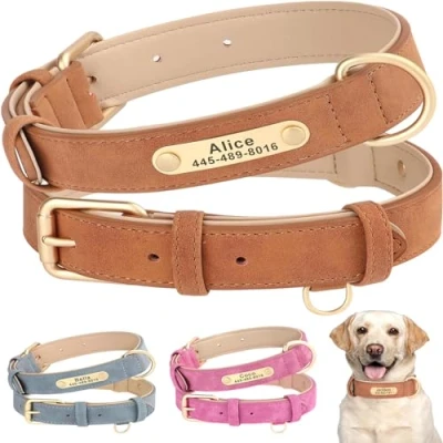 【Exceptional Quality and Comfort】📏 Elevate your dog's style with our premium collar, meticulously crafted from top-grade vintage leather for a luxurious look. The outer layer's sleek finish is complemented by a breathable neoprene lining, ensuring maximum comfort without irritating your pet's skin. Ideal for all dog sizes, our collars come in various adjustable sizes: XS (7-11" neck), S (9-13" neck), M (11-15" neck), L (14-18" neck), and XL (17-22" neck). 【Personalised for Your Pet's Safety】🏷️ Never worry about your furry friend getting lost with our customizable nameplate. Engrave your dog's name and your contact number in bold, legible lettering, ensuring they're always identifiable. The name is prominently displayed, making it easier for a safe return if they wander off. 【Robust and Rust-Resistant Hardware】🌟 Our dog collars feature upgraded, bronze-brushed buckles and D-rings, crafted for durability and long-term use. The hardware is designed to resist rust and withstand vigorous activities, ensuring your pet's safety and your peace of mind. The additional small D-ring serves perfectly for attaching ID tags, while the larger one is ideal for leash attachment. 【Fashion-Forward and Versatile Design】🐾 Stand out with our stylish collar, available in a variety of colors and two-tone designs, making it perfect for everyday use and special occasions. Whether it's a casual walk, a trip, or celebrating holidays like Christmas and Halloween, your pet will always look fashionable and ready for any event. 【Optimized for All Breeds and Life Stages】🐶 Our collars are not just for dogs; they're also cat-friendly! Whether you have a petite Chihuahua, a playful Labrador, or a majestic German Shepherd, our adjustable collars cater to all breeds. The breathable material and adjustable design ensure comfort at every growth stage, from frisky puppies to dignified adult dogs.