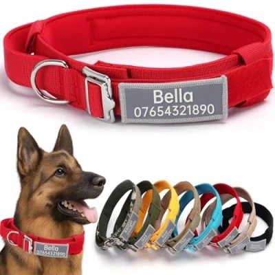 【Built to Last – Tough Yet Comfortable】Made from durable military-grade nylon with reinforced stitching, this collar is built for dogs who love to train, hike or work outdoors. The soft padded neoprene lining offers comfort and protects skin from irritation or matting. Perfect for daily walks, field use or training strong breeds like Labs, Staffies or German Shepherds. Lightweight but tough — made for adventure. 【Secure Metal Buckle & Easy Adjustment】This tactical dog collar features a strong interlocking metal buckle that stays secure even under heavy pulling. Unlike plastic clips, it offers a safer, longer-lasting hold. Easily adjustable for the perfect fit, whether you’re walking, training or working. Ideal for powerful breeds like Rottweilers, Bulldogs, and other medium to large dogs. 【Custom Reflective ID Patch】Includes a personalised reflective patch where your dog’s name and your phone number can be engraved. No noisy tags to fall off — just reliable visibility and easy identification on walks, runs or in the dark. Safer for dogs that go off-lead or work outdoors. Great for pet owners who want peace of mind without sacrificing durability. 【Adjustable Fit – S to XL, 8 Colours】Available in 4 sizes: S (30–35cm), M (35–42cm), L (42–50cm), XL (50–60cm), and 8 colours including Army Green, Greenuflage, Black, Beige, Red and more. Collar width: 3.8cm (S is 3cm). Easy to adjust and designed to suit most medium and large dogs. Stylish, practical, and made to perform in all conditions. 【Everyday Use & Outdoor Ready】Whether it’s a morning walk, off-lead hike, or obedience session, this collar is ready. Ideal for daily walking, training, working dogs and active pets. Strong enough for tactical or rescue use, yet comfortable for long wear. Suitable for breeds like Huskies, Retrievers, Malinois, Dobermans and more.
