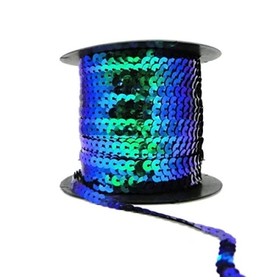 Sequin Trim Sequins Ribbon 6mm Strung Metallic Shiny Flat Paillette Spangle String for Embellishment Sewing Arts Crafts Fancy Dress Decoration (AB Green Blue 90 Meters)
