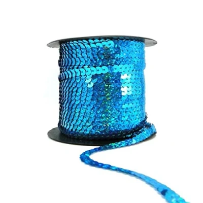 Sequin Trim Sequins Ribbon 6mm Strung Metallic Shiny Flat Paillette Spangle String for Embellishment Sewing Arts Crafts Fancy Dress Decoration (Holographic Blue 90 Meters)