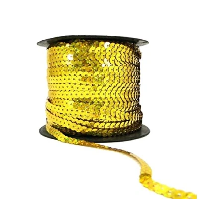 Sequin Trim Sequins Ribbon 6mm Strung Metallic Shiny Flat Paillette Spangle String for Embellishment Sewing Arts Crafts Fancy Dress Decoration (Holographic Gold 90 Meters)