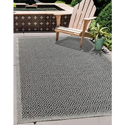 Serdim Rugs Harper Kilim Braided Greek Key Design Outdoor Rugs, Dark Grey, Rectangle 160 x 230cm