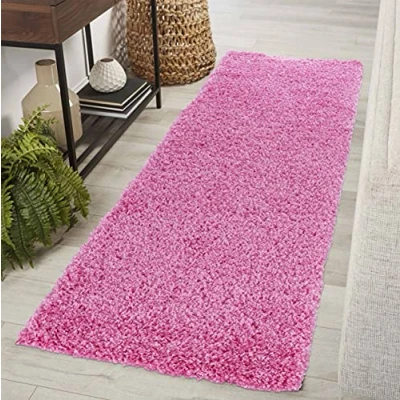 Serdim Rugs Living Room Hallway Runner Shaggy Rugs, Polypropylene, Pink, 60x220cm(2" x7'3)