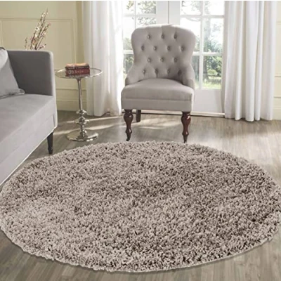 Serdim Rugs Living Room Round Shaggy Area Rugs, Polypropylene, L.Beige, 120x120cm(4x4')