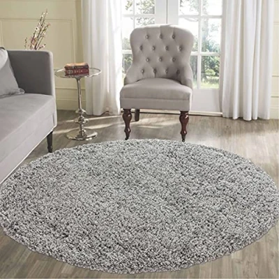 Serdim Rugs Living Room Round Shaggy Area Rugs, Polypropylene, Silver Grey, 120x120cm(4x4')