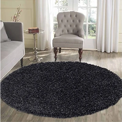 Serdim Rugs Living Room Shaggy Area Rugs, Polypropylene, Anthracite, Round 120x120cm(4x4')