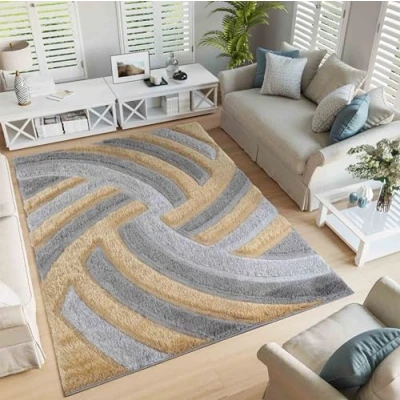 Serdim Rugs Modern Soft Swirl Design Hand Carved Shiny Shimmer Living Room Polyester Shaggy Rugs, Ochre, 120x170cm (4'x5'6")