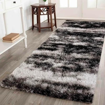 Serdim Rugs Modern Soft Two Tone Shiny Shimmer Living Room Polyester Shaggy Rugs, Dark Grey, 60x220cm (2" x7'3)