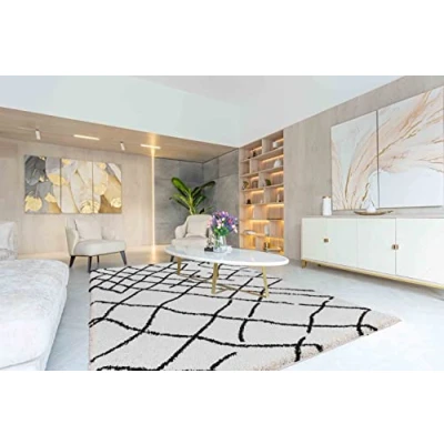 Serdim Rugs Morrocan Berber Living Room Abstract Design Shaggy Area Rugs, Stone, 120x170cm (4'x5'6")