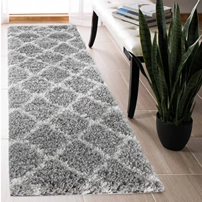 Serdim Rugs Morrocan Berber Living Room Bold Trellis Design Runner Shaggy Area Rugs, Grey, 60x220cm (2" x7'3)
