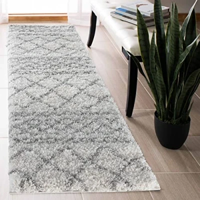 Serdim Rugs Morrocan Berber Living Room Mixed Diamond Geometric Design Runner Shaggy Area Rugs, Light Cream, 60x220cm (2" x7'3)
