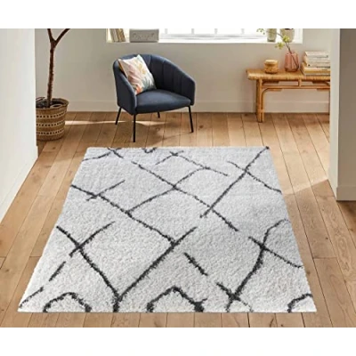 Serdim Rugs Morrocan Berber Living Room Scandi Shaggy Area Rugs, Dark Cream, 160x230cm (5'3"x7'7")