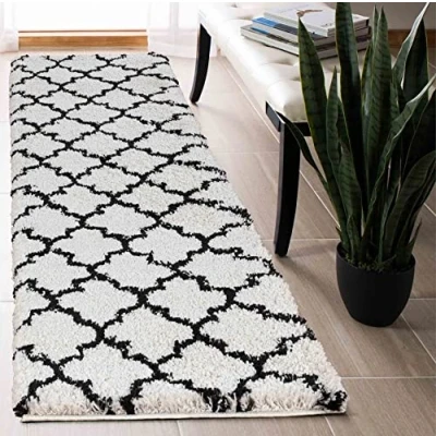 Serdim Rugs Morrocan Berber Living Room Trellis Design Runner Shaggy Area Rugs, Stone, 60x220cm (2" x7'3)