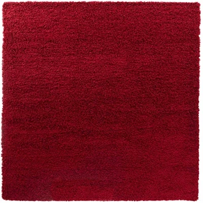 Serdim Rugs Plain Living Room Shaggy Area Swatch Red 20x20 cm