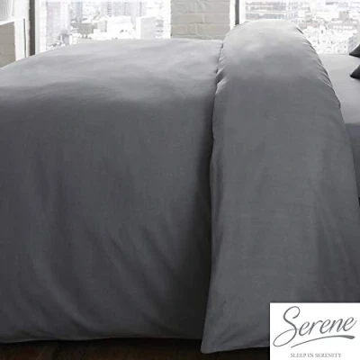 Serene Plain Dye Collection Easy Care Duvet Cover, Charcoal, Single