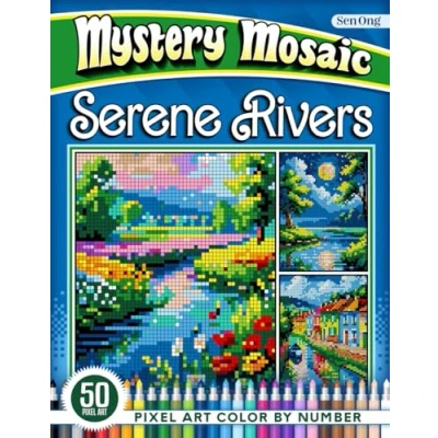 Serene Rivers Mystery Mosaics Color by Number: 50 Pixel Art Calming River Landscapes