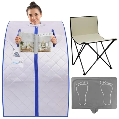 RAPID HEATING FOR RELAXATION - Experience fast heating with 3 carbon fiber panels, delivering soothing warmth up to 140°F. Enjoy a calming session for up to 60 minutes. Effortlessly control your sauna settings with the included remote. REJUVENATION AND WELLNESS - Rejuvenate with infrared saunas for home that relax the mind, boost skin health, soothe muscles, and relieve stress. Perfect for a post-workout sweat or unwinding after a long day. SPACIOUS AND COMFORTABLE SAUNA BOX- Enjoy the comfort of a folding chair, heated foot pad, and armholes for multitasking. Convenient zippers ensure easy access. Its foldable design allows for compact storage, making it ideal for any living space. PORTABLE SAUNA FOR HOME - This compact 40" x 33" sauna turns any room into a serene wellness retreat. Lightweight and mobile, it’s perfect for apartments, bedrooms, or wherever relaxation is needed. Enjoy spa-like luxury at home. DURABLE AND EASY TO CLEAN - Made from premium thermal insulation fabric, this home sauna minimizes heat loss for efficiency. Designed to withstand frequent use, it’s easy to maintain, ensuring a lasting addition to your wellness routine.
