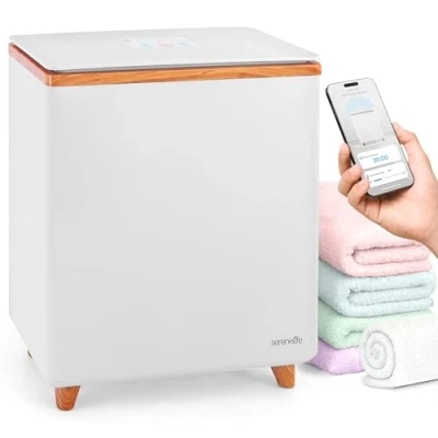 WI-FI CONTROLLED FOR CONVENIENCE: Easily connect the towel warmer to your home WiFi and control it remotely with your mobile phone. Schedule on/off times for hassle-free comfort, ensuring warm towels and blankets are always ready when you need them. HEATS LARGE TOWELS EVENLY: Generously sized to hold two large bath towels or a cozy throw blanket, this towel warmers spa ensures even, consistent heating throughout. Perfect for creating a spa-like experience at home. KEEPS HEAT INSIDE, LID COOL: The towel heater’s double-walled insulated lid retains heat efficiently while staying cool to the touch. Its hands-free design makes filling and emptying effortless, enhancing convenience and energy conservation. MULTIPURPOSE AND PORTABLE DESIGN: Warm more than just towels—robes, blankets, and other fabric items are perfectly suited. Lightweight with a built-in indicator light, this compact large towel warmer is easy to transport and ideal for any space. SAFE AND EASY TO USE: Designed with overheat protection and a water-resistant body, this bathroom towel warmer prioritizes safety. The single-touch control and automatic shut-off make operation simple and secure for daily use., Weight: 9.3475999088 pounds, Manufacturer: SereneLife