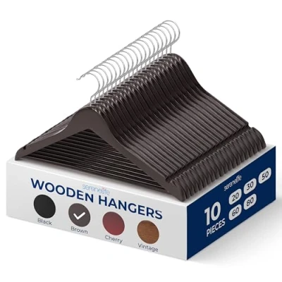 SereneLife Wood Hangers Space Saving Heavy Duty Slim Suit Clothes Hanger Set with 360 Degree Swivel Metal Hook, Can Hold Up to 10 Lbs. for Coats, Jackets, Pants & Dress (10 Pieces)