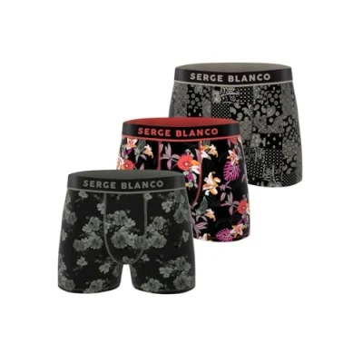 Serge Blanco Men's Boxer Shorts, Breathable & Ultra Soft (Pack of 3), Dark Grey/Black/Red, L