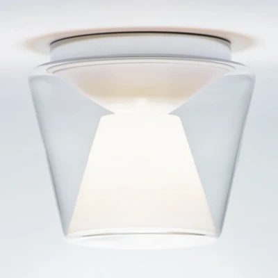 Lamp MastersDesign Uwe Fischer for Annex LED Ceiling Lamp Clear/Opal L is first-rate German craftsmanship from Serien Lighting. This high-quality product is made to be durable, practical, and versatile—in other words, the lamp is fit for countless purposes. Annex LED Ceiling Lamp features a blown glass lampshade and an internal aluminium reflector. The lamp is a simple geometrical construction consisting of conical shapes that interact with one another. The reflector creates a double illumination, lighting up the ceiling as well as the room below. This model has a focused downlight with the same brightness above and below thanks to the clear reflector. Its long lifespan makes the Annex LED Ceiling Lamp perfect for use in the workplace. Annex is available in three sizes and with various types of reflectors to suit you, your home, and your needs.