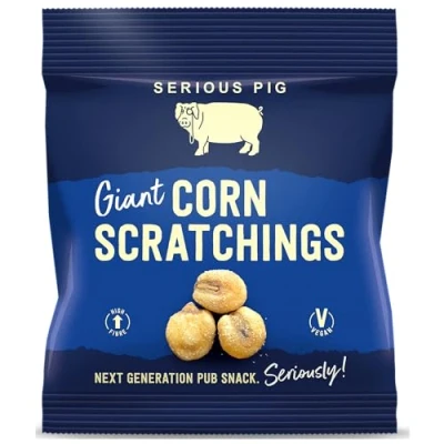 SERIOUS PIG Giant Corn Scratchings Alternative To Pork With Traditional Seasoning Vegan (12 Pack)