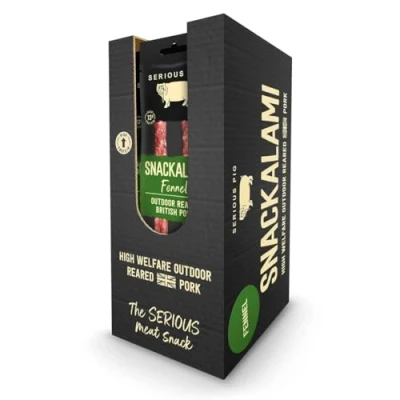 INGREDIENTS: Outdoor-reared British pork with white pepper, garlic and fennel seed PRODUCTION: Handcrafted salami produced in the UK following traditional methods DIETARY FEATURES: Gluten free with 13g protein per pack; suitable for keto diets PRODUCT DETAILS: 12 packs with two salami sticks per pack, featuring traditional Italian Finocchiona flavour STORAGE: Keep in a dry area at ambient temperature - no need for refrigeration