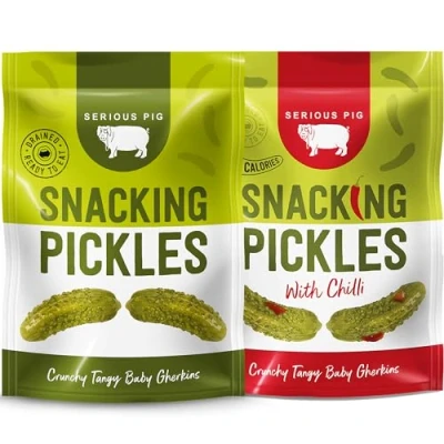 Serious Pig Snacking Pickles Selection Box, Crunchy Baby Gherkins Chilli and Original Flavours, Healthy Snacks (4x 40g)
