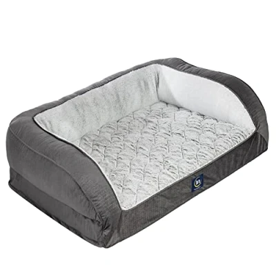 SERTA QUALITY: Our Serta Quilted Couch dog bed is ideal for pets that like to snuggle while sleeping. The soft, supportive bolster side pillows give your dog a place to rest their head and allows them the option to stretch out or curl up JOINT SUPPORT: The thick convoluted foam offers the same quality and comfort as a human mattress, with joint friendly orthopedic support. Every Serta pet bed is CertiPUR-US certified, so you can feel confident your pet is resting on the safest bed on the market PLUSH SLEEP SURFACE: There's a reason why our pet bed products are so popular with cats and dogs, the soothing, two-tone, quilted plush sleep surface provides ultra-soft comfort for a great night’s sleep. Available in multiple colors that will blend in well with your home décor WASHABLE: Removable zippered cover is machine washable and foam cushion is easy to spot clean with mild soap and water USA ASSEMBLED: All Serta Pet beds are assembled and packaged in North America from high-quality eco-friendly materials. Each dog bed is compressed to reduce excess packaging materials