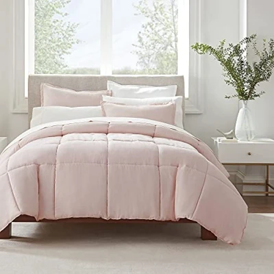 Serta Ultra Soft Hypoallergenic Solid Comforter Set, Polyester, Blush, King