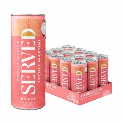 SERVED Lychee Martini 250ml, 8% ABV, Premium Bar Quality, Pre Mixed & Ready To Drink, 12 x 250ml Cans