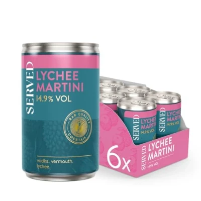 SERVED Lychee Martini Cocktails, 14.9% ABV, Premium Quality, Bar Strength, Pre Mixed & Ready To Drink, 6 x 125ml Cans