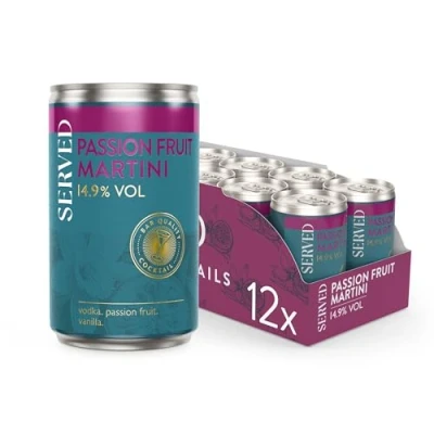 SERVED Passion Fruit Martini, 14.9% ABV, Premium Quality, Bar Strength, Pre Mixed & Ready To Drink, 12 x 125ml Cans