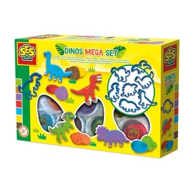 SES Creative 00503 Dino Clay Mega Set Create Dinosaur Figures with 7 Moulds and Colours of Washable Gluten Free Vegan Friendly Perfect for Play Kids Aged 2+
