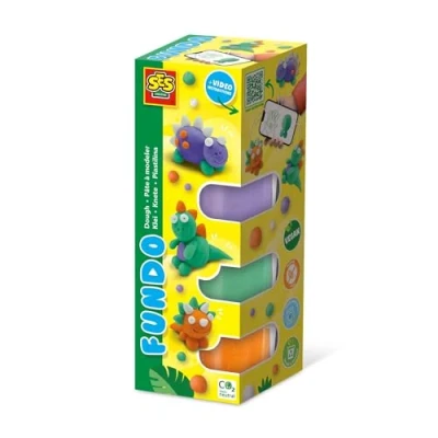 Unleash your inner artist with the SES Creative FunDo dough - Dinos, perfect for young paleontologists. This FunDo dough - Dinos (3x90gr-1x40gr) set from SES Creative helps kids create dinosaur shapes. Engage in imaginative play with the SES Creative FunDo dough, designed for dinosaur lovers. SES Creative FunDo dough - Dinos is ideal for developing creativity and motor skills in children. Let your child's imagination roar with the SES Creative FunDo dough, perfect for educational fun. Includes an instruction video to learn and make the figures., Manufacturer: SES Creative